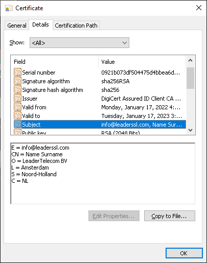 LeaderTelecom DigiCert Client Premium (SMIME) Certificates prices
